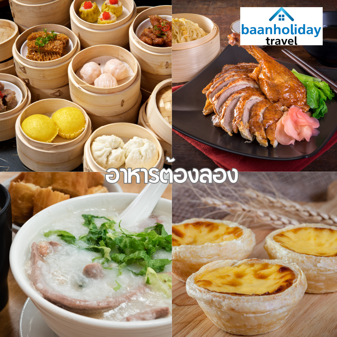 นักท่องเที่ยวจะได้เพลิดเพลินกับอาหารชื่อดังระดับตำนาน เช่น ติ่มซำ เป็ดย่าง โจ๊กฮ่องกง และไข่ทาร์ตหอมเนย รวมถึงของฝากยอดนิยมอย่างคุกกี้ Jenny Bakery และขนมเปี๊ยะไข่เค็มลาวา