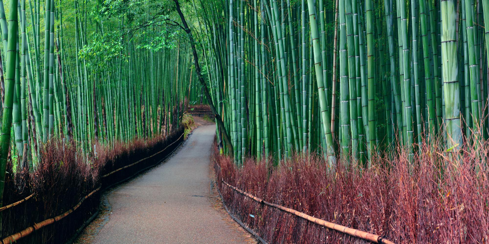 จุดเด่นคือ “ป่าไผ่” ที่เรียงตัวสูง สร้างบรรยากาศเย็นสบายและเงียบสงบ