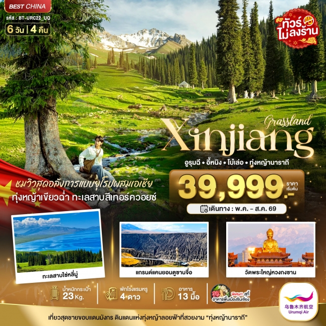 ทัวร์จีน ซินเจียงเหนือ อูรุมฉี อี้หนิง โบ๋เล่อ ทุ่งหญ้านาราถี 6 วัน 5 คืน