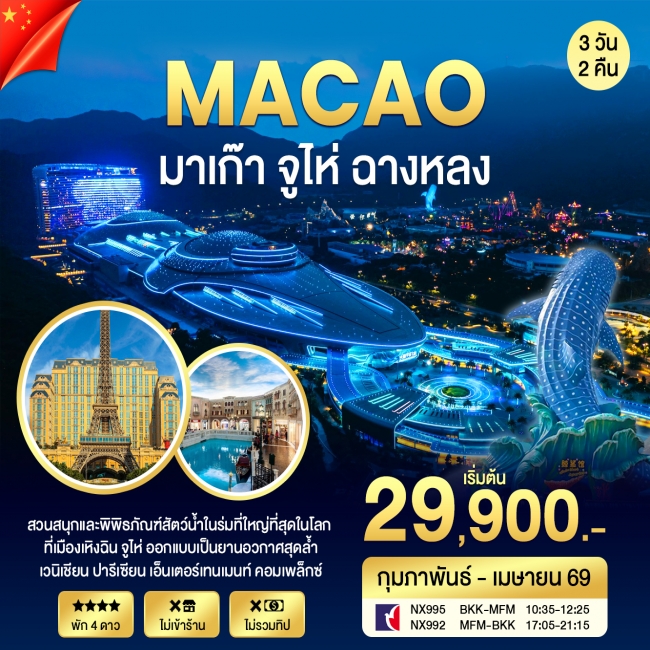 | 1 | กรุงเทพฯ-มาเก๊า-สวนสนุก Zhuhai Chime long Theme Park | / / |