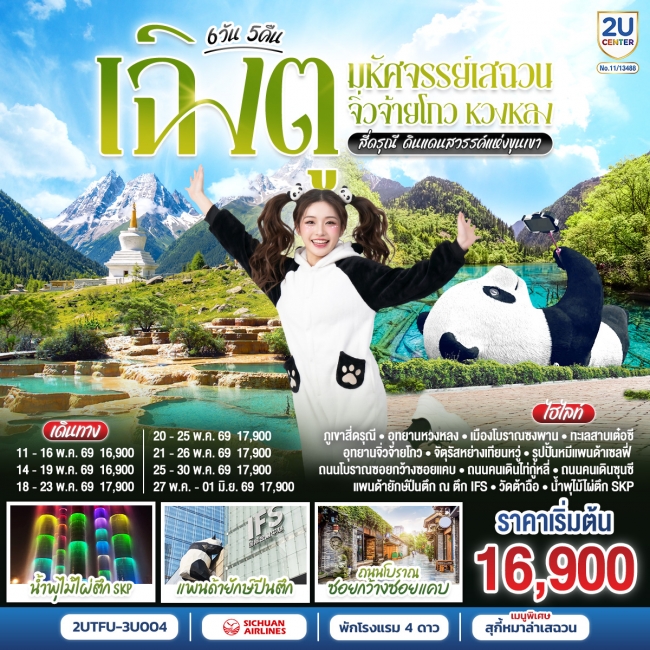 ทัวร์จีน เฉิงตู มหัศจรรย์เสฉวน จิ่วจ้ายโกว หวงหลง สี่ดรุณี ดินแดนสวรรค์แห่งขุนเขา 6วัน 5คืน