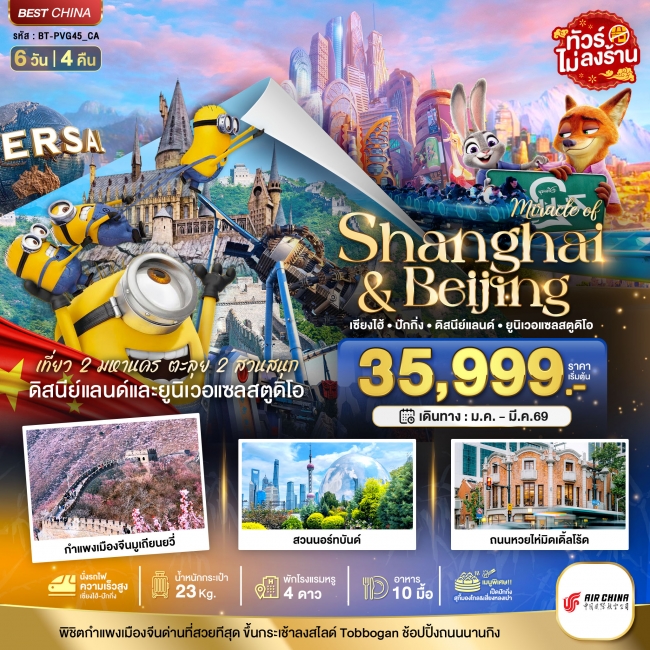 | ทัวร์จีน เซี่ยงไฮ้ ปักกิ่ง 2 สวนสนุก 6 วัน 4 คืน