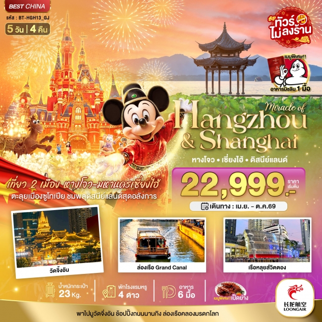 ทัวร์จีน เซี่ยงไฮ้ หางโจว ดิสนีย์แลนด์ 5 วัน 4 คืน