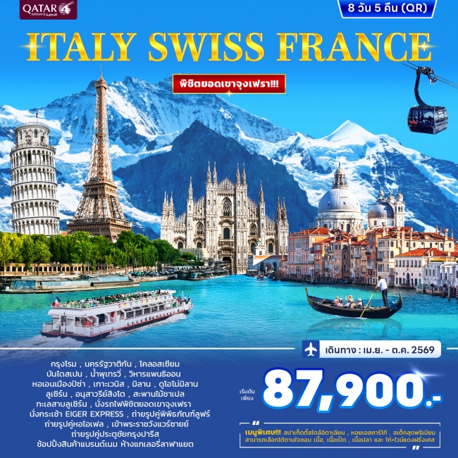 หมู่บ้านโอเบอร์อัมเมอร์เกา - โบสถ์ เอททาล แอบบี - การ์มิช-พาร์เทนเคียร์เซิน – อินส์บรูก – หลังคาทองคำ - หมู่บ้านวัล ดิ ฟุนส์ – จุดชมวิวบริเวณโบสถ์ Santa Magdalena - โบสถ์เซนต์จอห์น - บริกเซน – มหาวิหารบริกเซน– โอร์ทิเซย์ – นั่งกระเช้าลอยฟ้า ชมวิว แอล์ป เดอ ซุสซิ - นั่งกระเช้าลอยฟ้าขึ้นสู่ จุดชมวิวแอล์ป ดิ ซิซีดา - ทะเลสาบเบรียซ