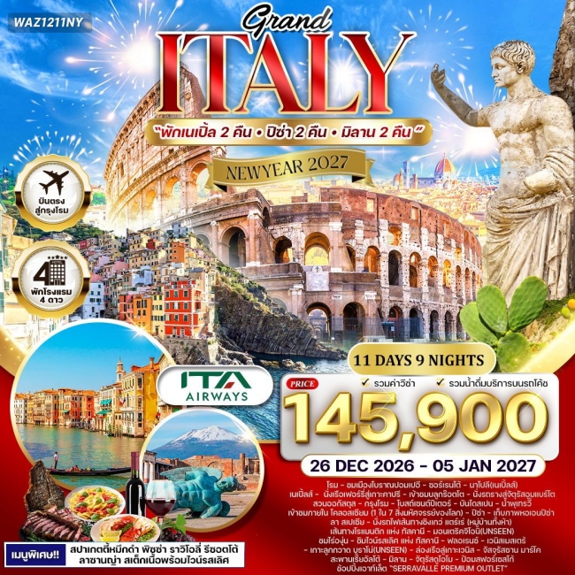 ทัวร์แกรนด์อิตาลี เส้นทางในฝันแห่งยุโรปใต้ 11 วัน 9 คืน