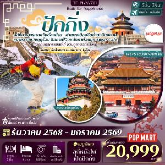 เมืองโบราณกู๋เป่ยสุ่ยเจิ้น – กำแพงเมืองจีนด่านซือหม่าไถ (รวมค่ากระเช้าขึ้น-ลง) ชมวิวกำแพงเมืองจีนและเมืองโบราณ – ปักกิ่ง ยูนิเวอร์แซลปักกิ่ง ปักกิ่ง – จัตุรัสเทียนอันเหมิน – พระราชวังโบราณ กู้กง – หอบูชาเทียนถาน – คาเฟ่กาแฟบ้น้ำตาล พระราชวังฤดูร้อนอวี้เหอหยวน – ย่านซานหลี่ถุน (POP MART) – ถนนคนเดินไท่กู๋หลี่ – ปักกิ่ง